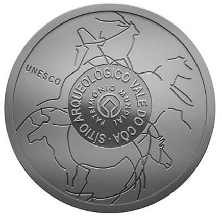 2,50 eurós érme, amely a Côa-völgyi régészeti lelőhelyre utal
